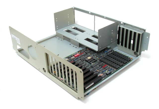 Поскольку компьютер долгое время хранился в каком-то подсобном помещении, он сильно запылился. Чтобы привести его в подобающее состояние, его пришлось основательно разобрать. Ниже приведены фотографии сборки компьютера после чистки в обратном порядке.